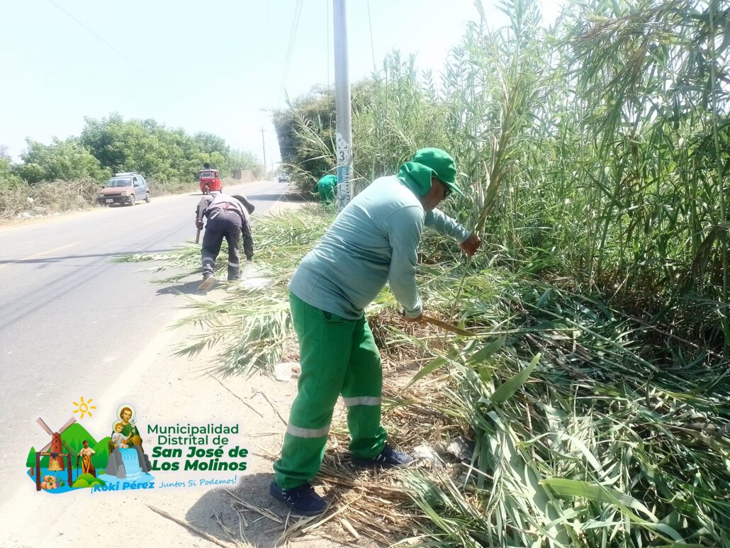 Nuestros colaboradores del área de servicios comunales, vienen realizando trabajo de limpieza eliminando aromos y plantaciones que llegan hasta parte de la carretera de ingreso a nuestro Distrito, causando la no visibilidad del trafico siendo un peligro tanto para nuestros hermanos conductores como también a nuestra poblacional en general.